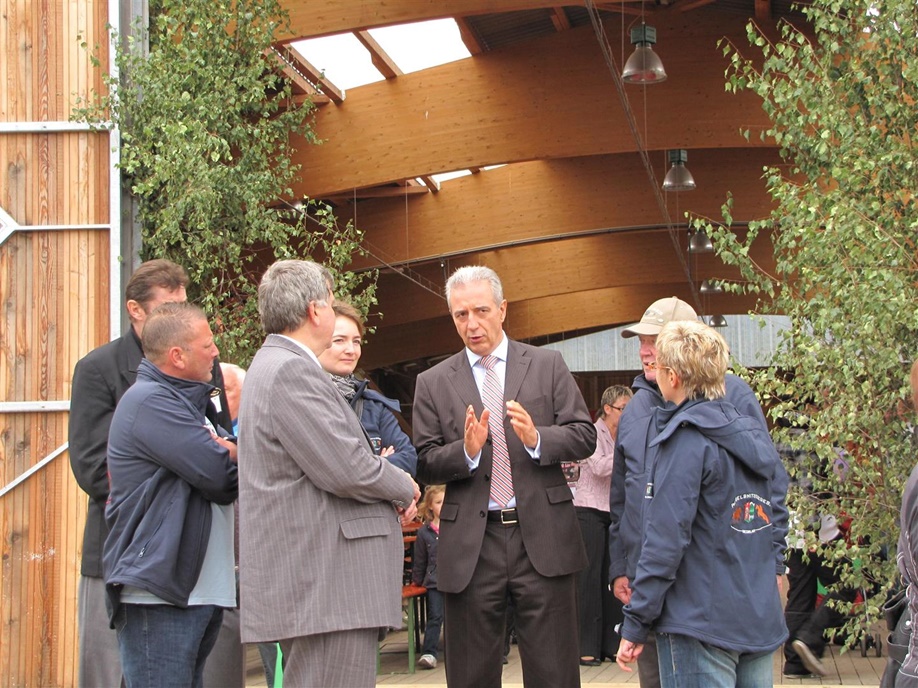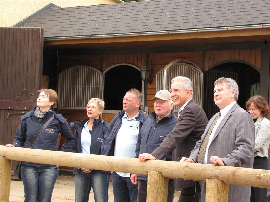 Doch auch ein pferdebegeisterter Ministerpräsident ließ es sich zum „Tag der Sachsen“ nicht nehmen unsere Anlage zu besichtigen. Sichtlich begeistert begutachtete Herr Stanislaw Tillich die festlich geschmückte Halle.